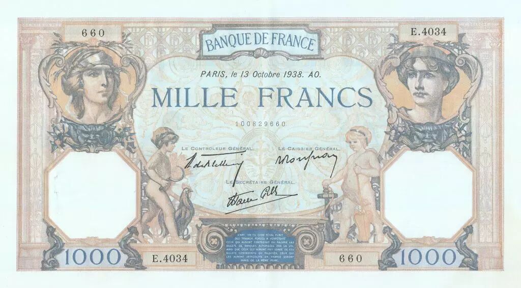 1 pinhole, 1 fold, pleasant noteIssuing date : 1938-10-13Alphabet : E Serie : 4034