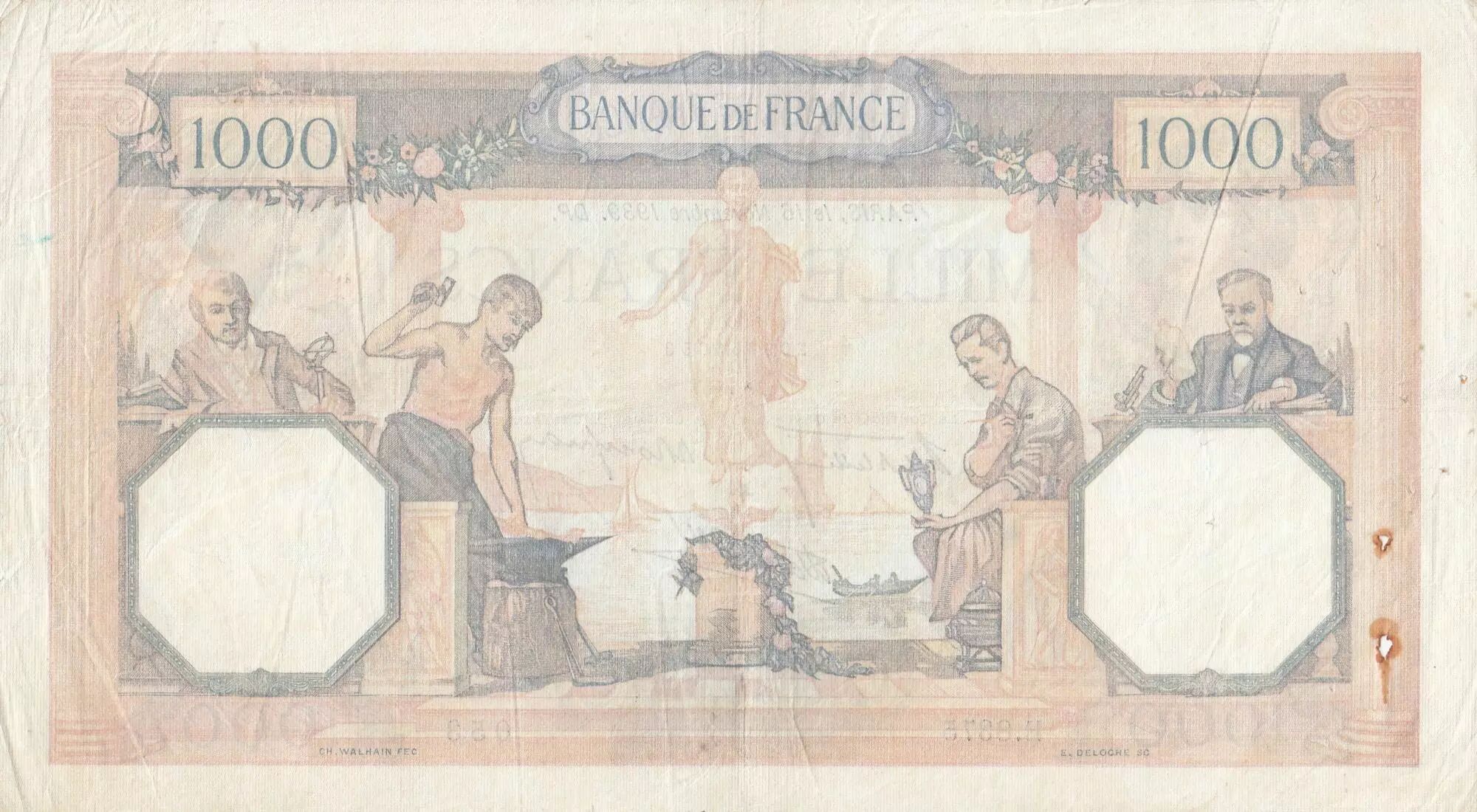 Banknote France 1000 Francs Ceres and Mercury - 16-11-1939 - Serial E.8375