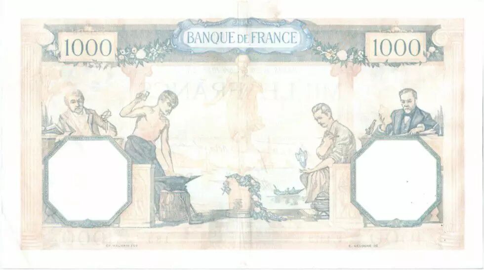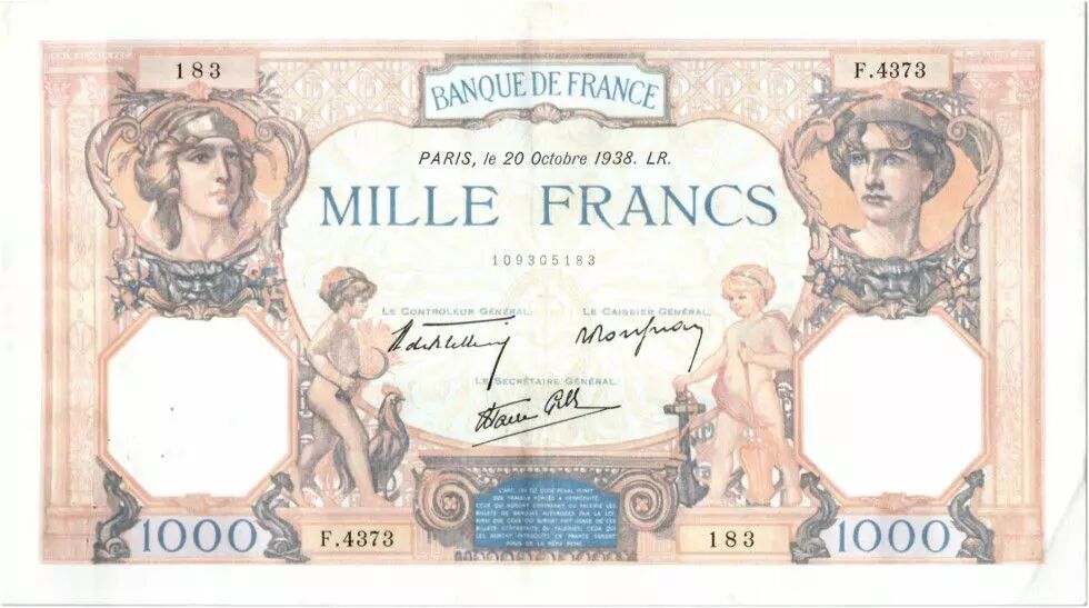 Home > > France 1000 Francs Ceres and Mercury - 20-10-1938 Serial D.4373-183