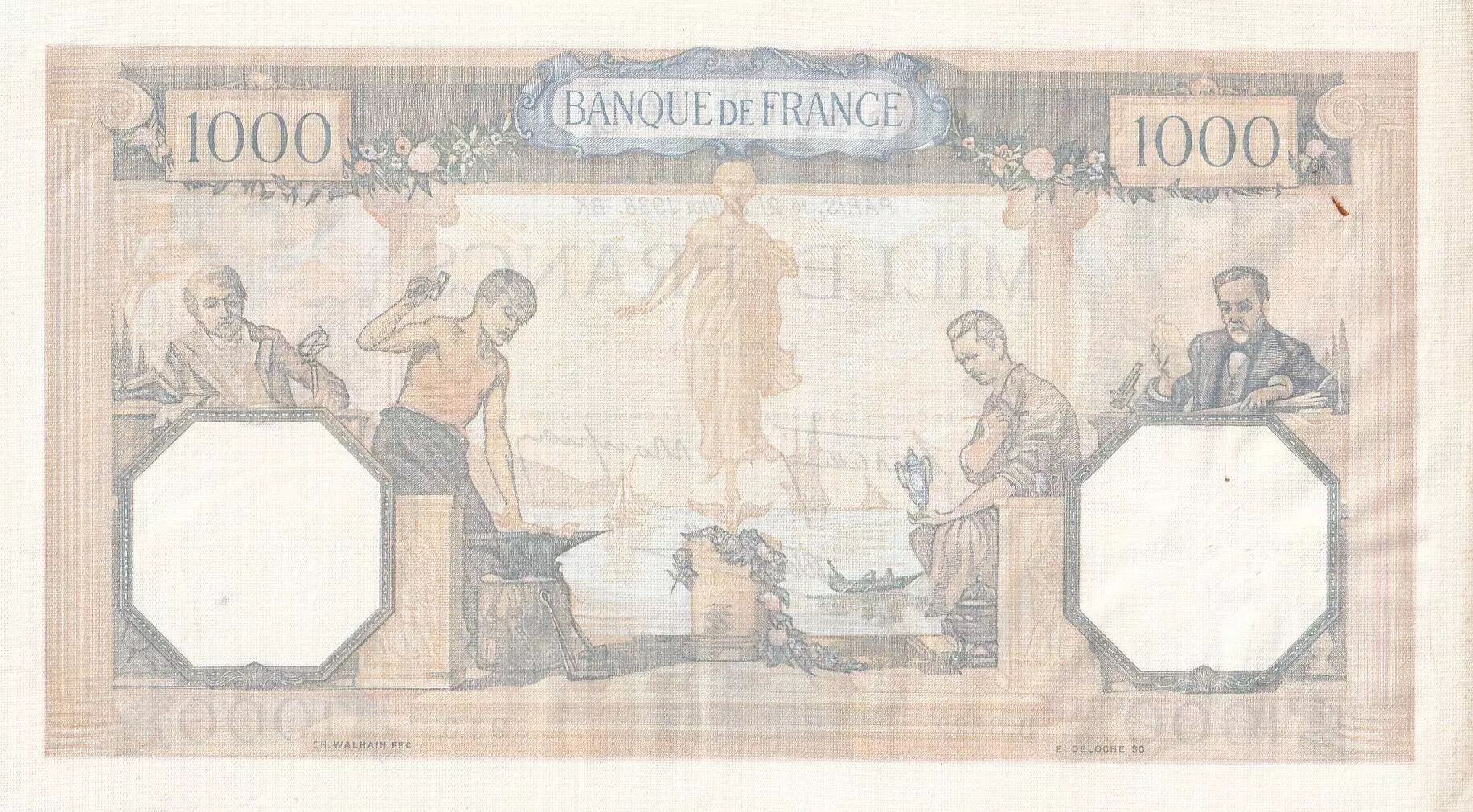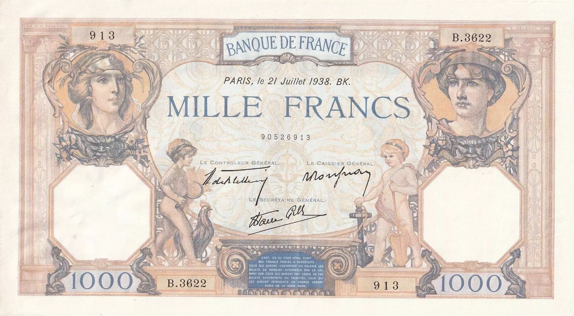 Banknote France 1000 Francs Ceres and Mercury - 21-07-1938 - Serial B.3622