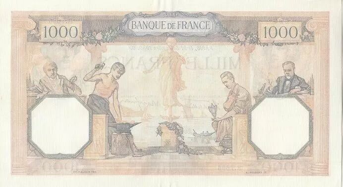 The year of issue, 1939, gives this banknote a particular historical dimension, as it corresponds to the beginning of the Second World War. In this context of crisis and uncertainty, the 1000 Francs Cérès and Mercury banknote may have played an important role in financial transactions and the economic life of the country.
