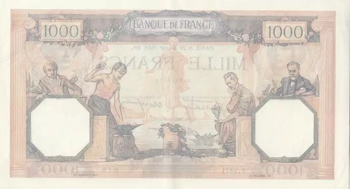 Banknote France 1000 Francs - Ceres and Mercury - 26-01-1939 - Serial F.5971