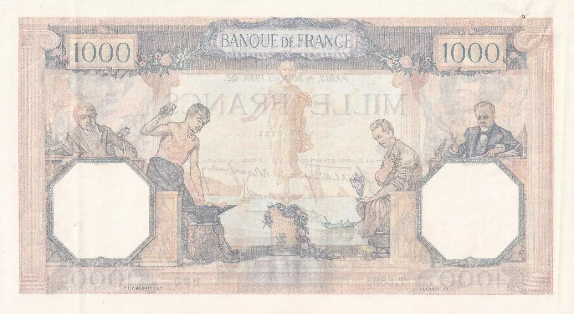 Banknote France 1000 Francs Ceres and Mercury - 30-03-1939 - Serial T.6865