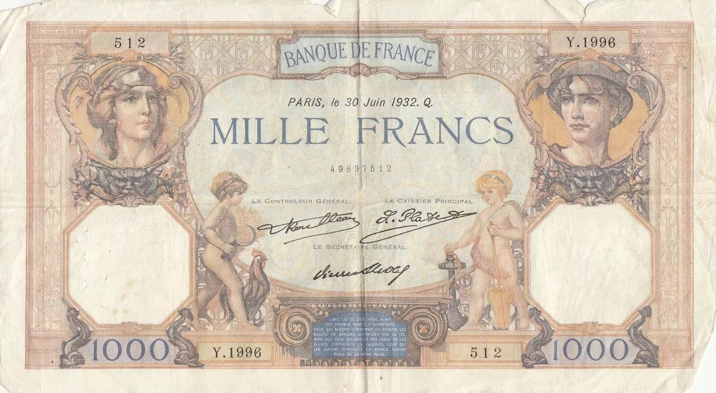 Home > > France 1000 Francs Ceres and Mercury - 30-06-1932 - Serial Y.1996