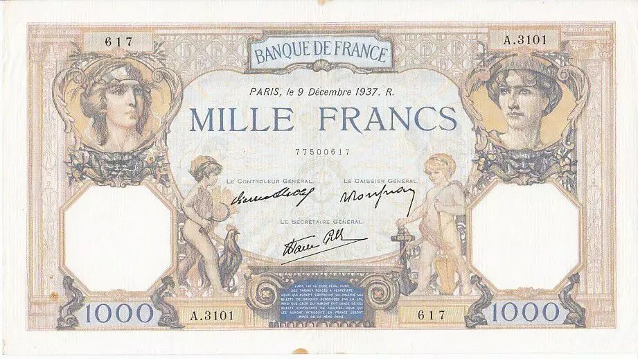 Billet France 1000 Francs Cérès et Mercure - 09-12-1937 - Série A3101