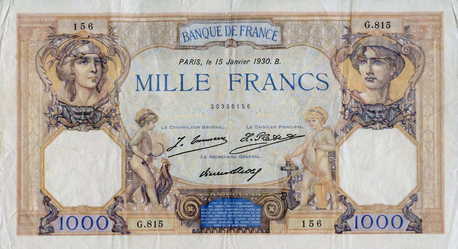 Accueil > Archivage > archivage-Billets Français > France 1000 Francs Cérès et Mercure - 15-01-1930 Série G.815 - TTB