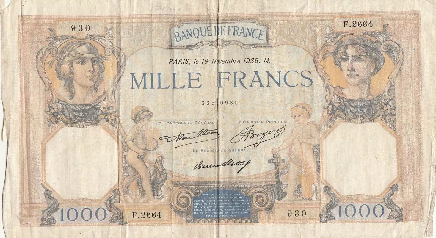 Billet France 1000 Francs Cérès et Mercure - 19-11-1936 - Série F.2664