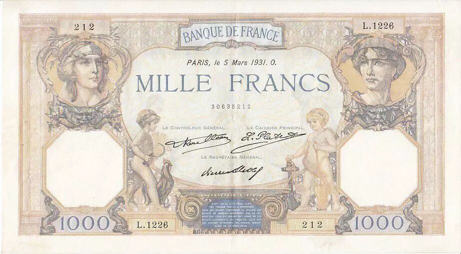 Accueil > Archivage > archivage-Archivage > France 1000 Francs Cérès et Mercure - 1931