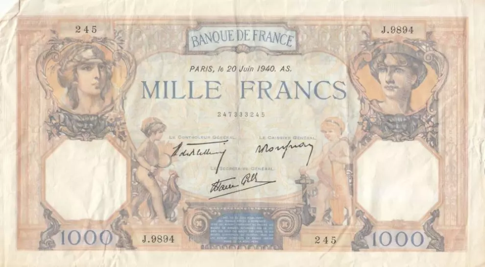Billet France 1000 Francs - Cérès et Mercure - 20-06-1940 - Série J.9894