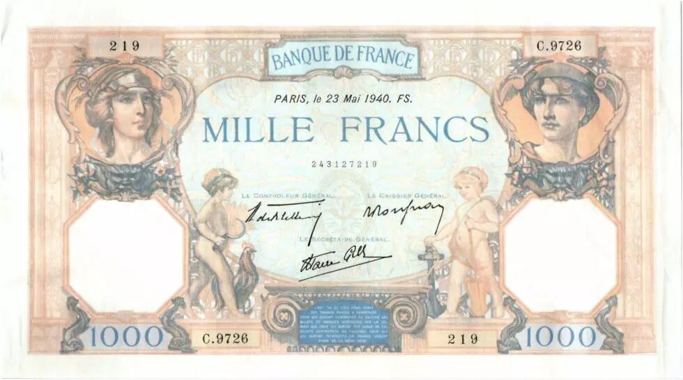 Accueil > Archivage > archivage-Archivage > France 1000 Francs Cérès et Mercure - 23-05-1940 Série C.9726-219