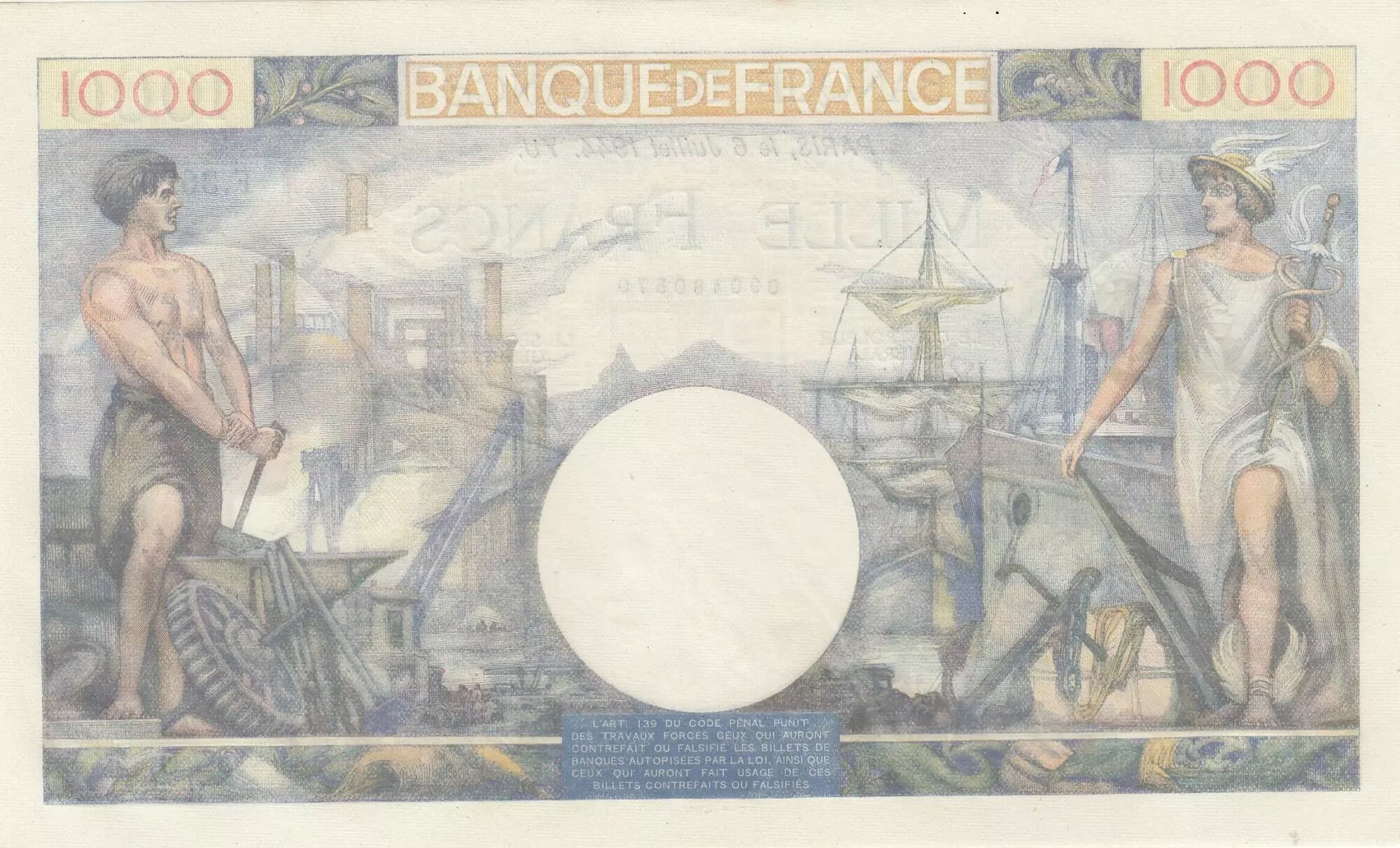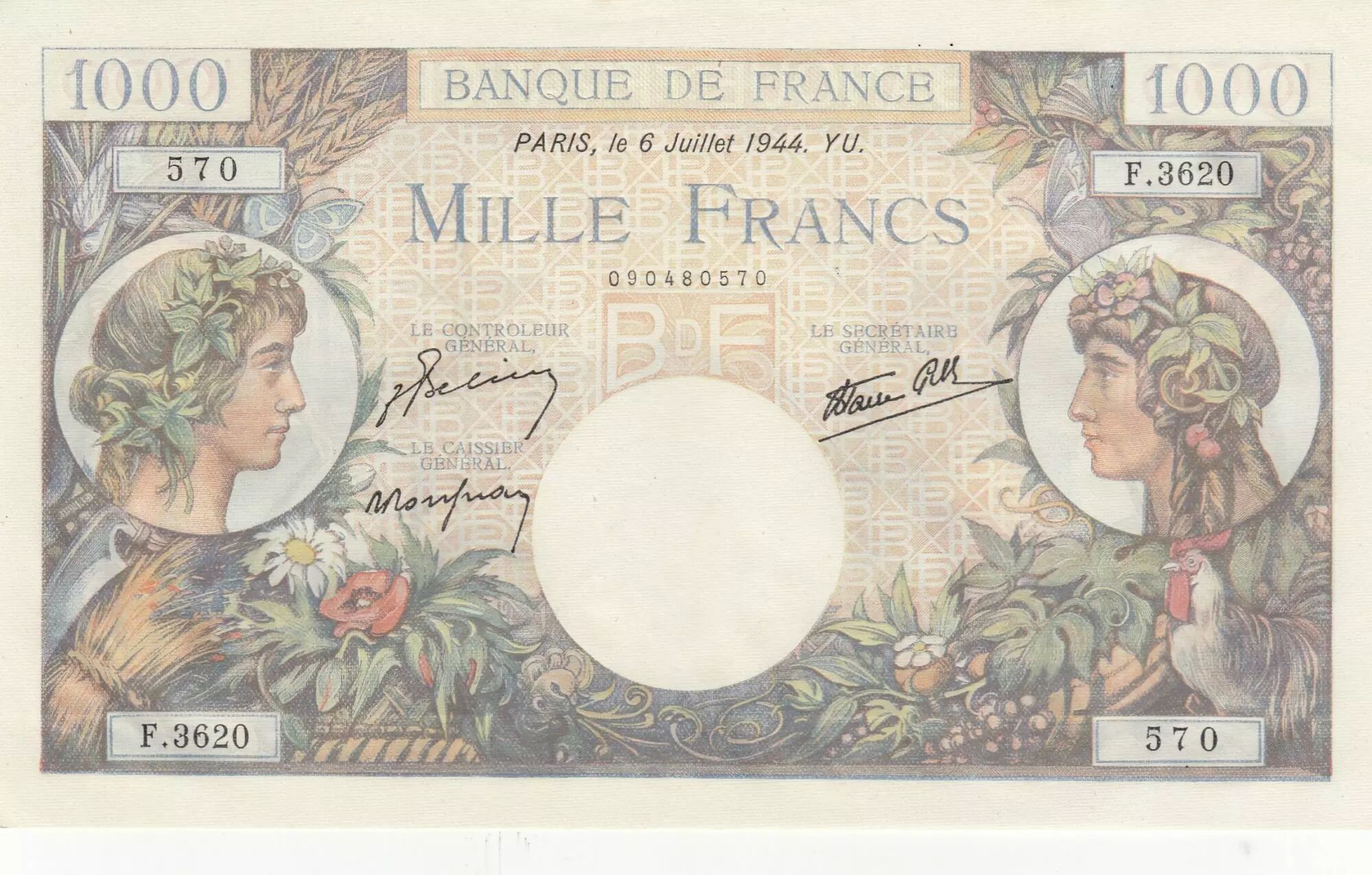 Banknote France 1000 Francs - Commerce and Industry - 06-07-1944 Serial F.3620