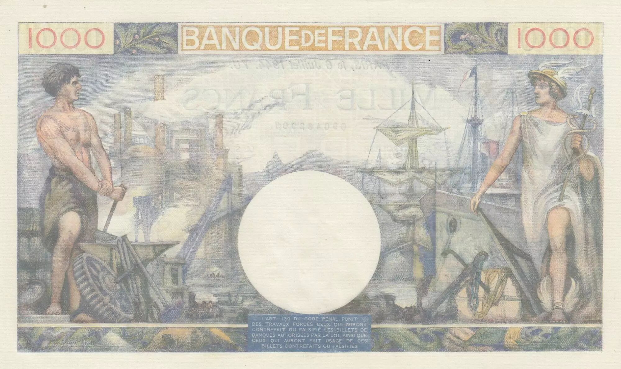 Banknote France 1000 Francs - Commerce and Industry - 06-07-1944 - Serial H.3620