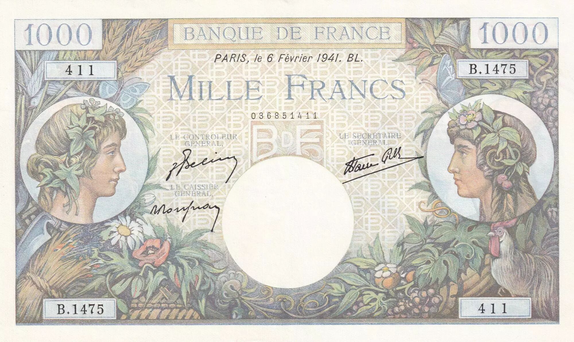 Accueil > Archivage > France 1000 Francs Commerce et Industrie - 06-02-1941 Série B.1475