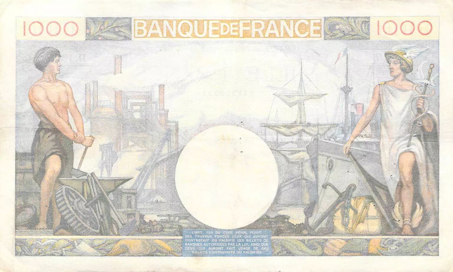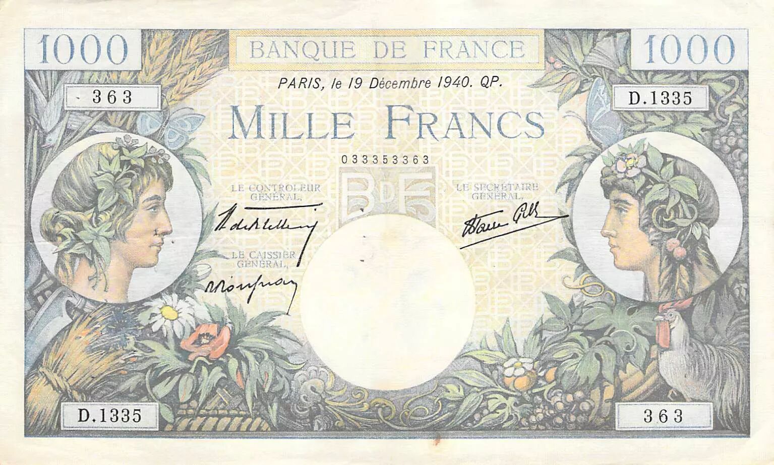 Accueil > Archivage > France 1000 Francs Commerce et Industrie - 19-12-1940 Série D.1335 - TTB+