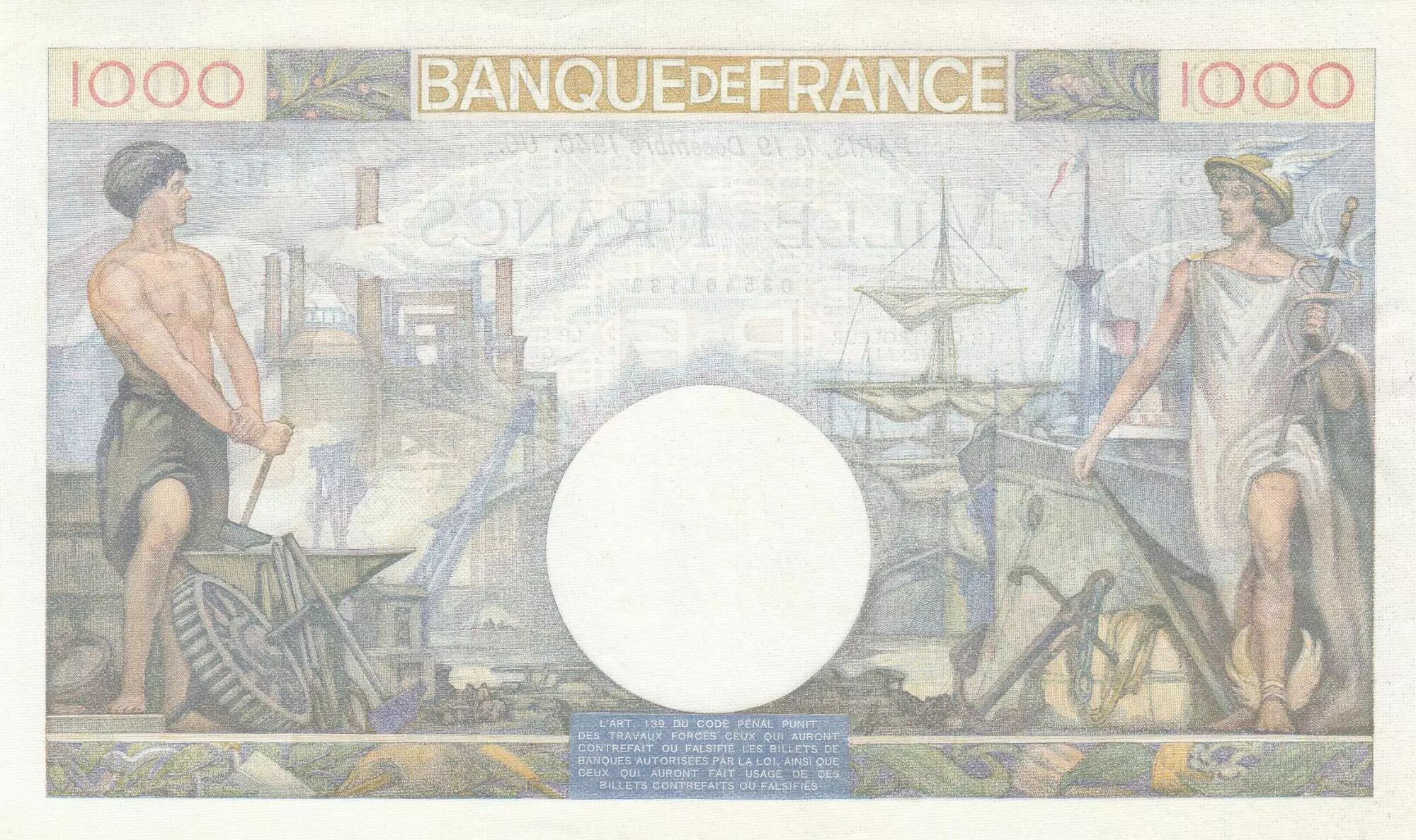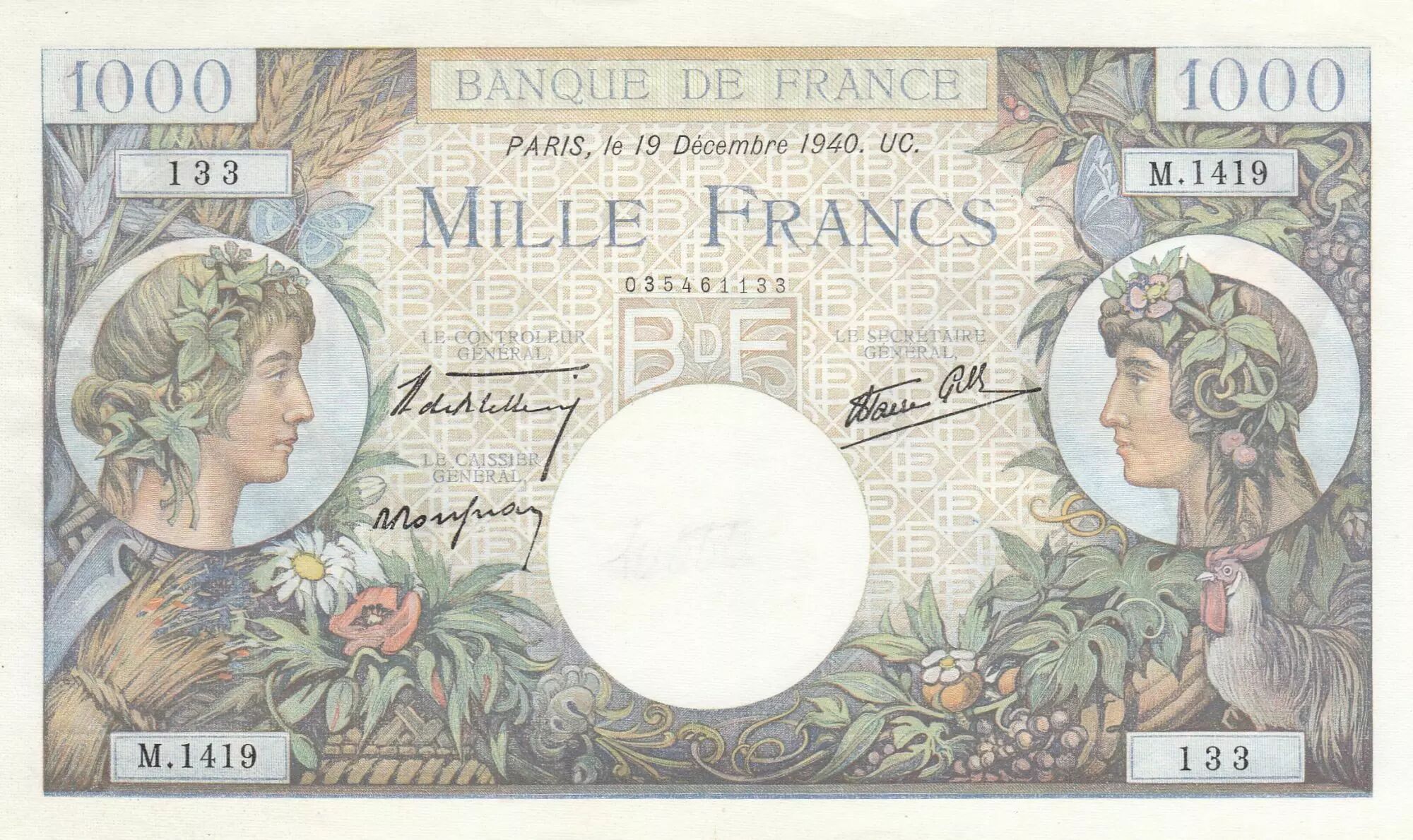 Billet France 1000 Francs - Commerce et Industrie - 19-12-1940 - Série M.1419