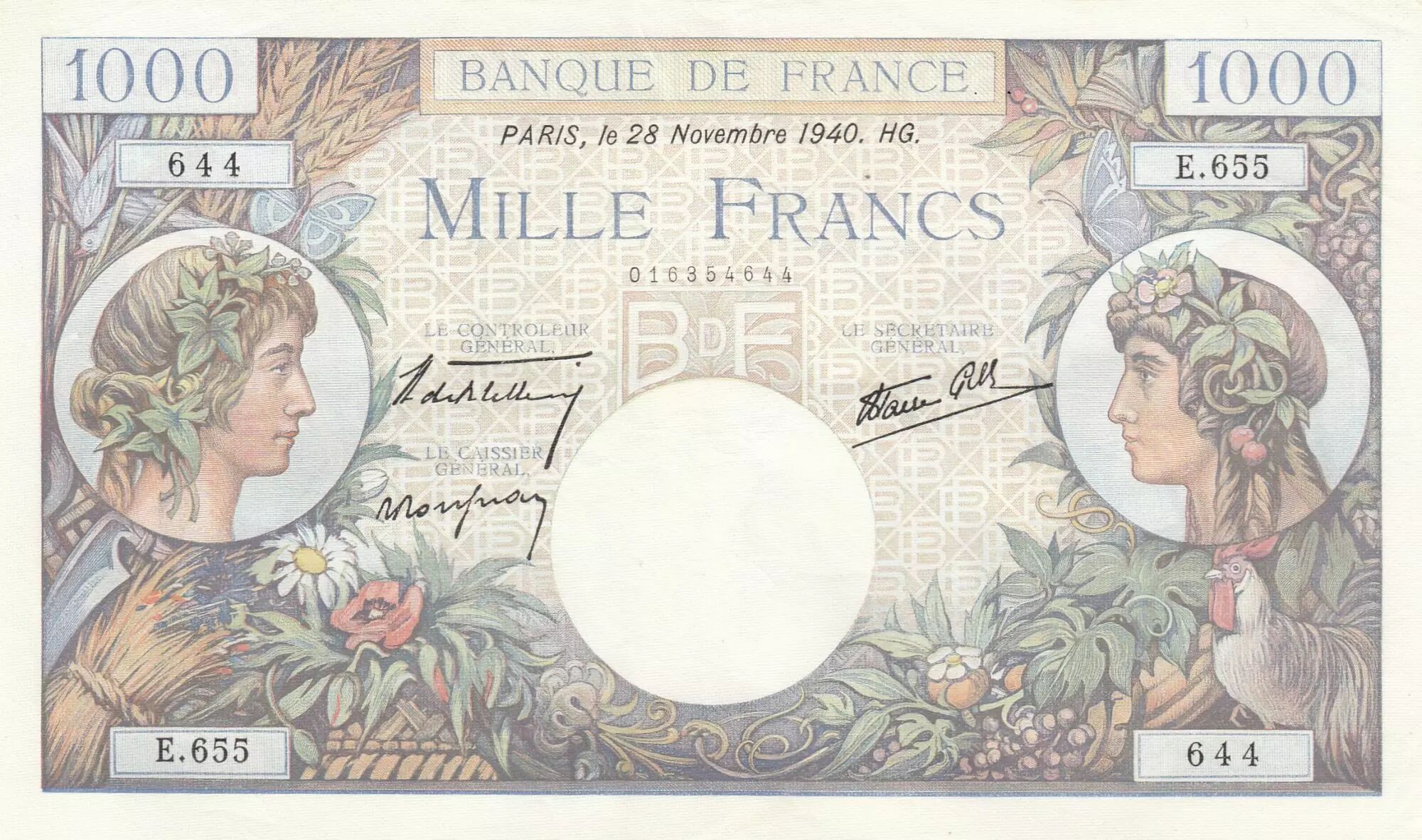Billet France 1000 Francs - Commerce et Industrie - 28-11-1940 - Série E.655