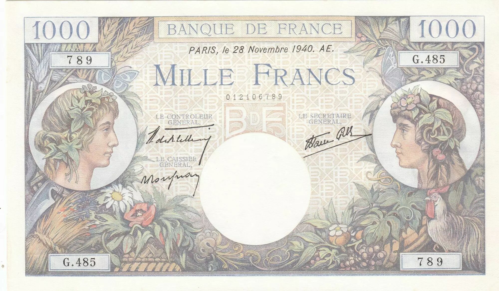 Billet France 1000 Francs - Commerce et Industrie - 28-11-1940 - Série G.485