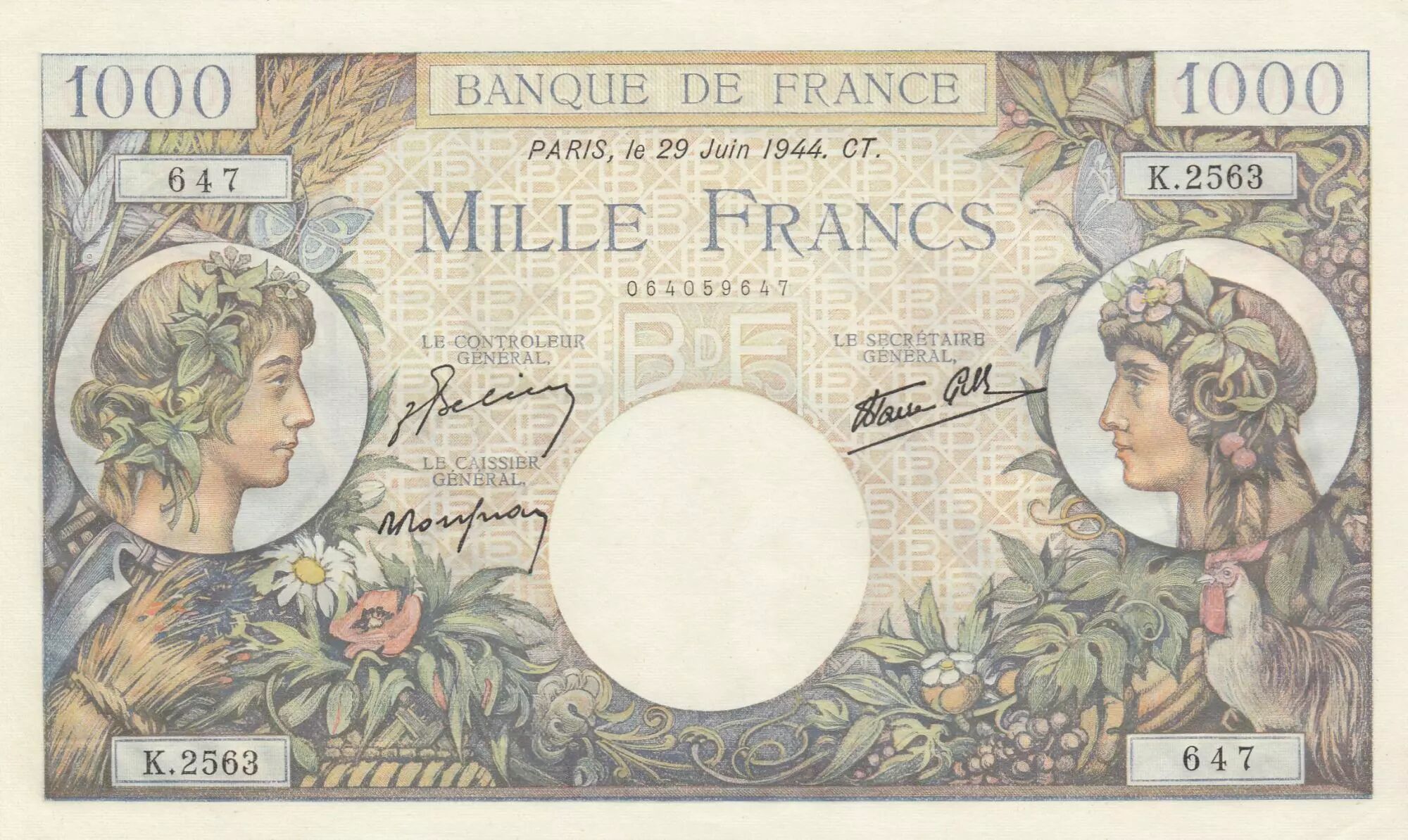 Billet France 1000 Francs - Commerce et Industrie - 29-06-1944 - Série K.2563
