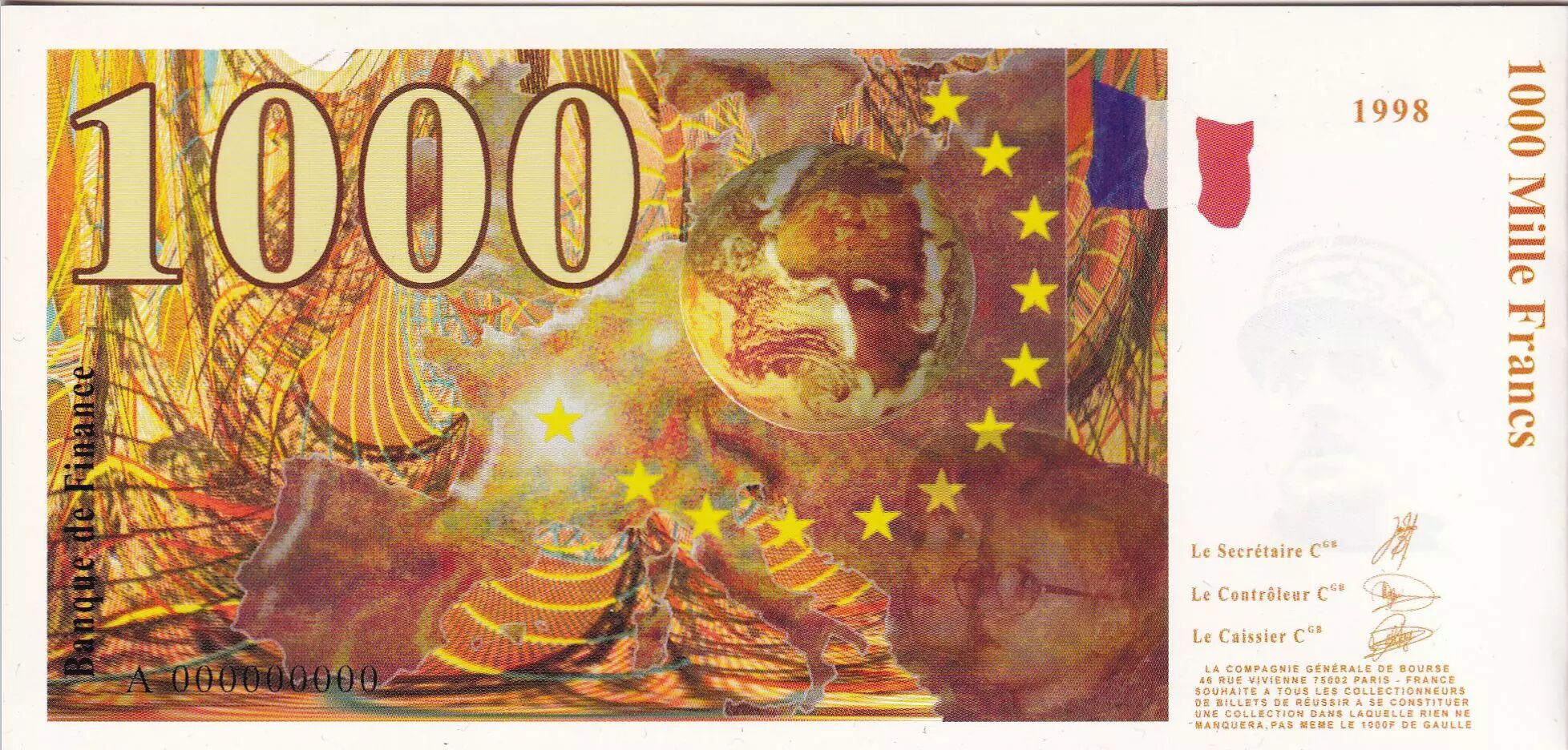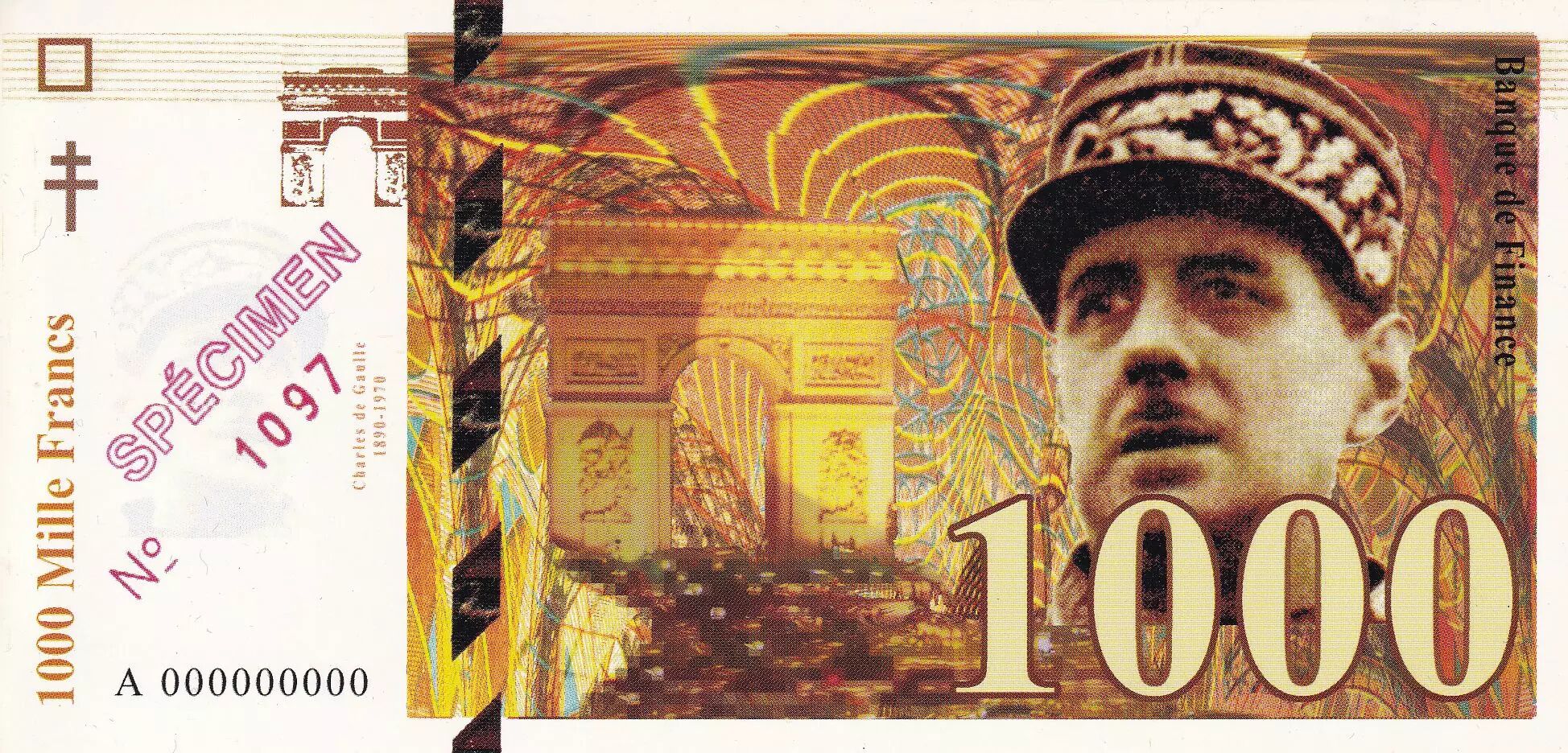 Accueil > Archivage > France 1000 Francs - De Gaulle - Spécimen - 1998 - Fantaisie