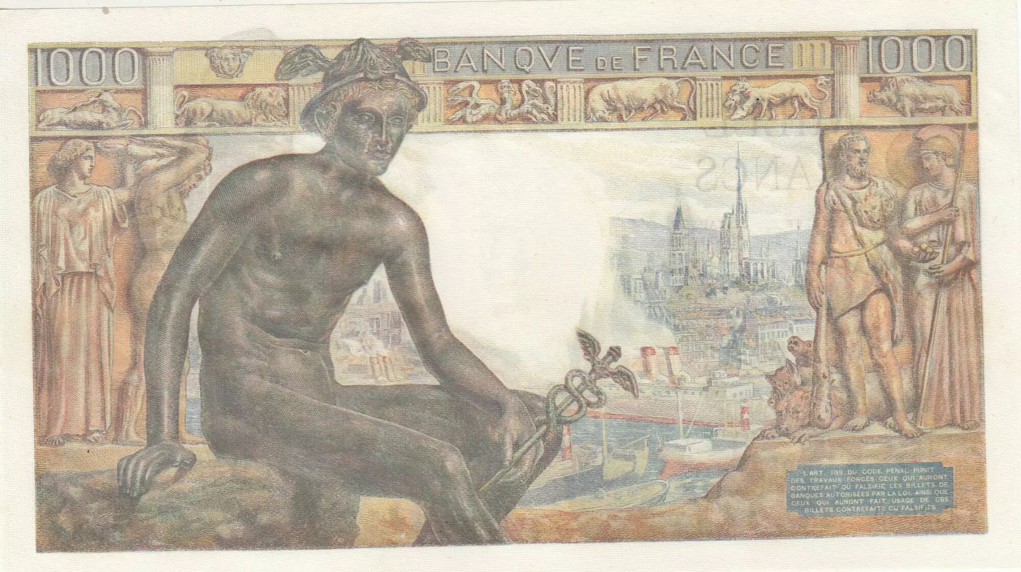 Accueil > Archivage > France 1000 Francs - Déesse Déméter - 07-01-1943 - Série T.2989