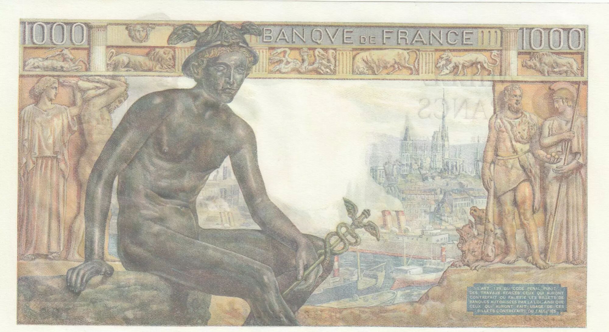 Billet France 1000 Francs - Déesse Déméter - 13-08-1942 - Série Y.955