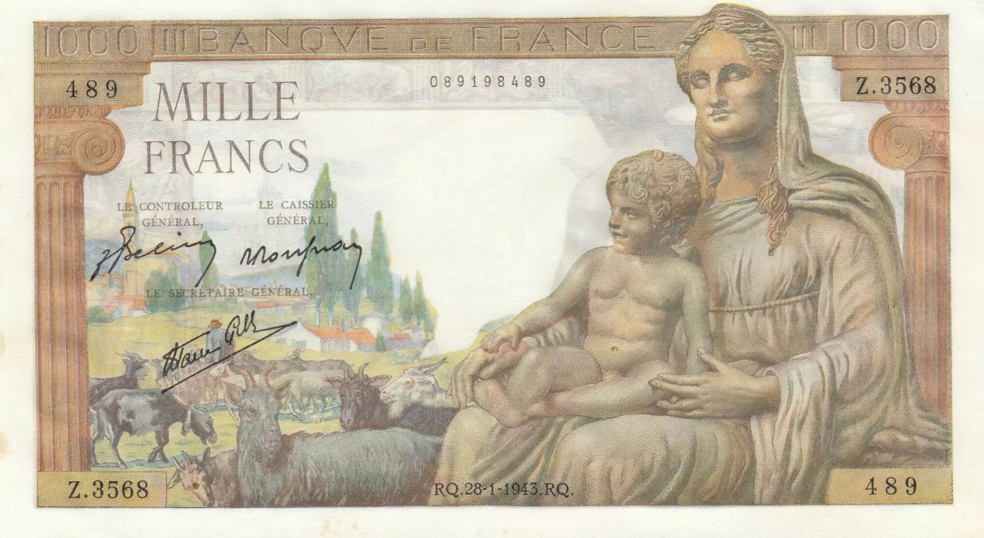 Home > > France 1000 Francs - Deesse Demeter - 28-01-1943 - Serial Z.3568