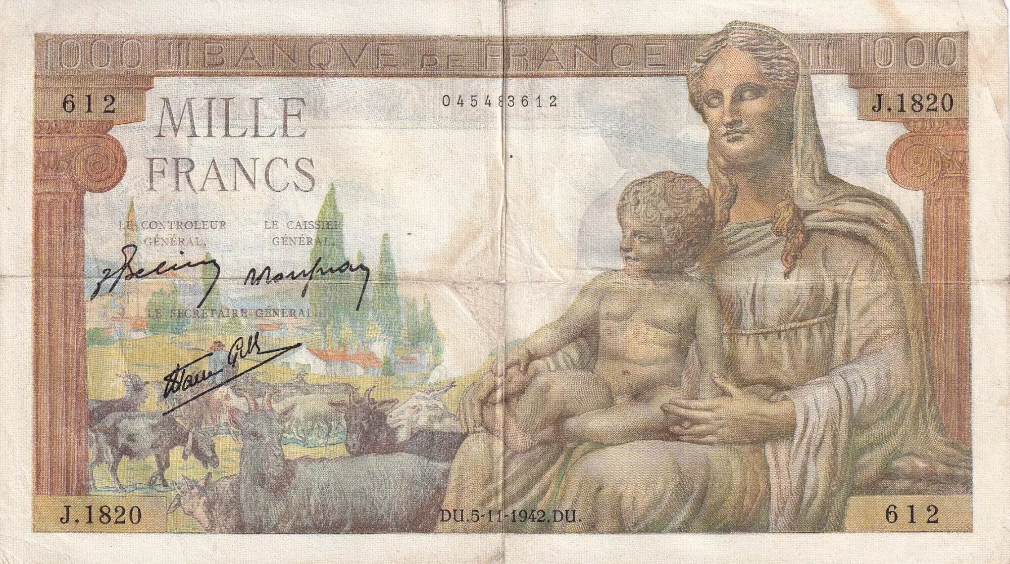 Billet France 1000 Francs - Déesse Déméter - Séries et années variées - F.40 - TB à TTB
