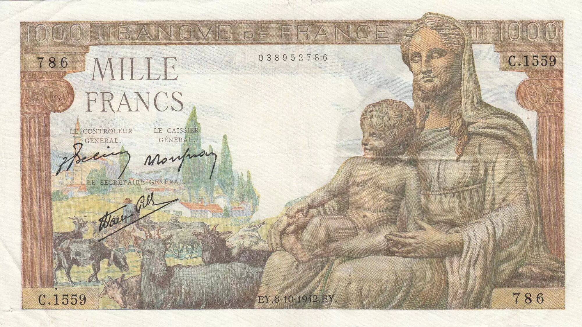Home > > France 1000 Francs Demeter - 08-10-1942 Serial C.1559 - VF