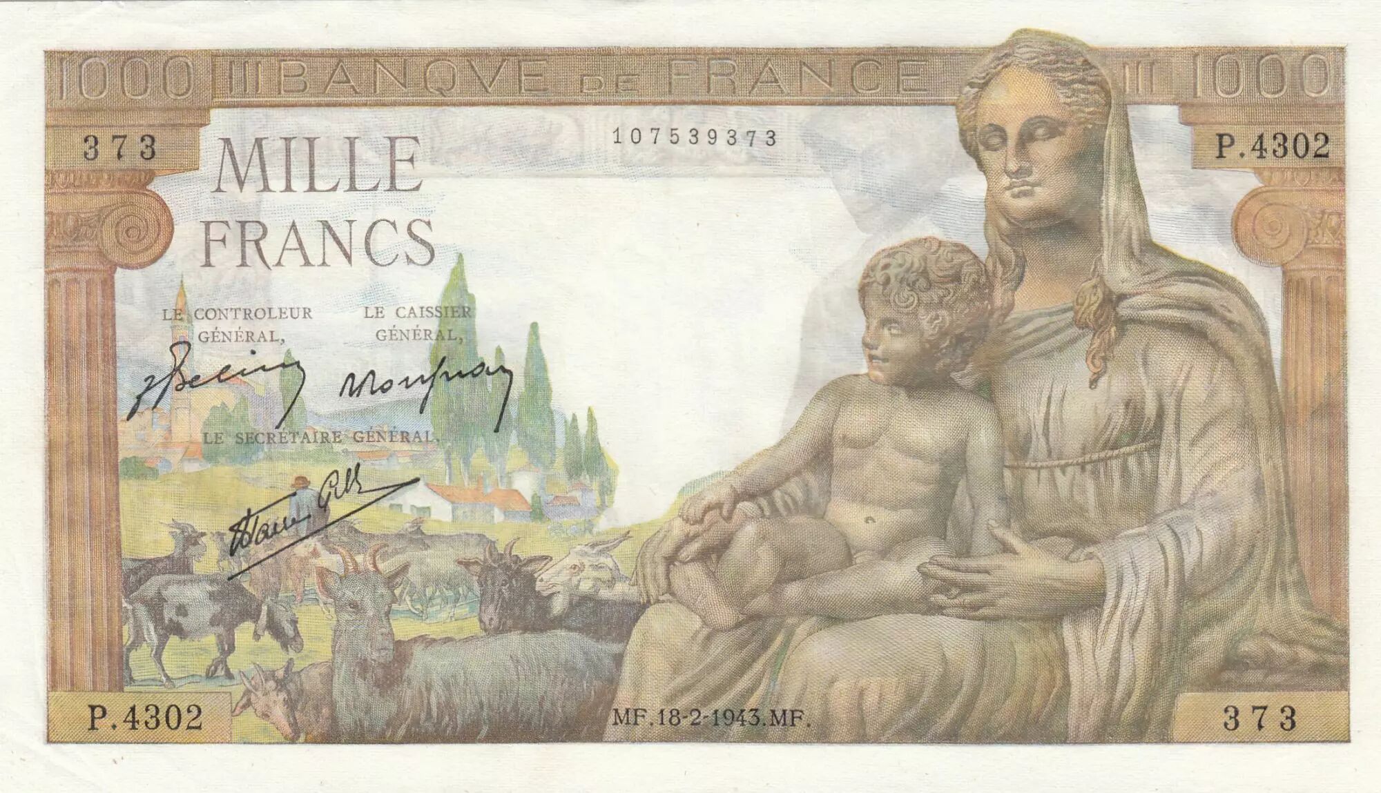 Banknote France 1000 Francs - Demeter - 18-02-1943 - Serial P.4302