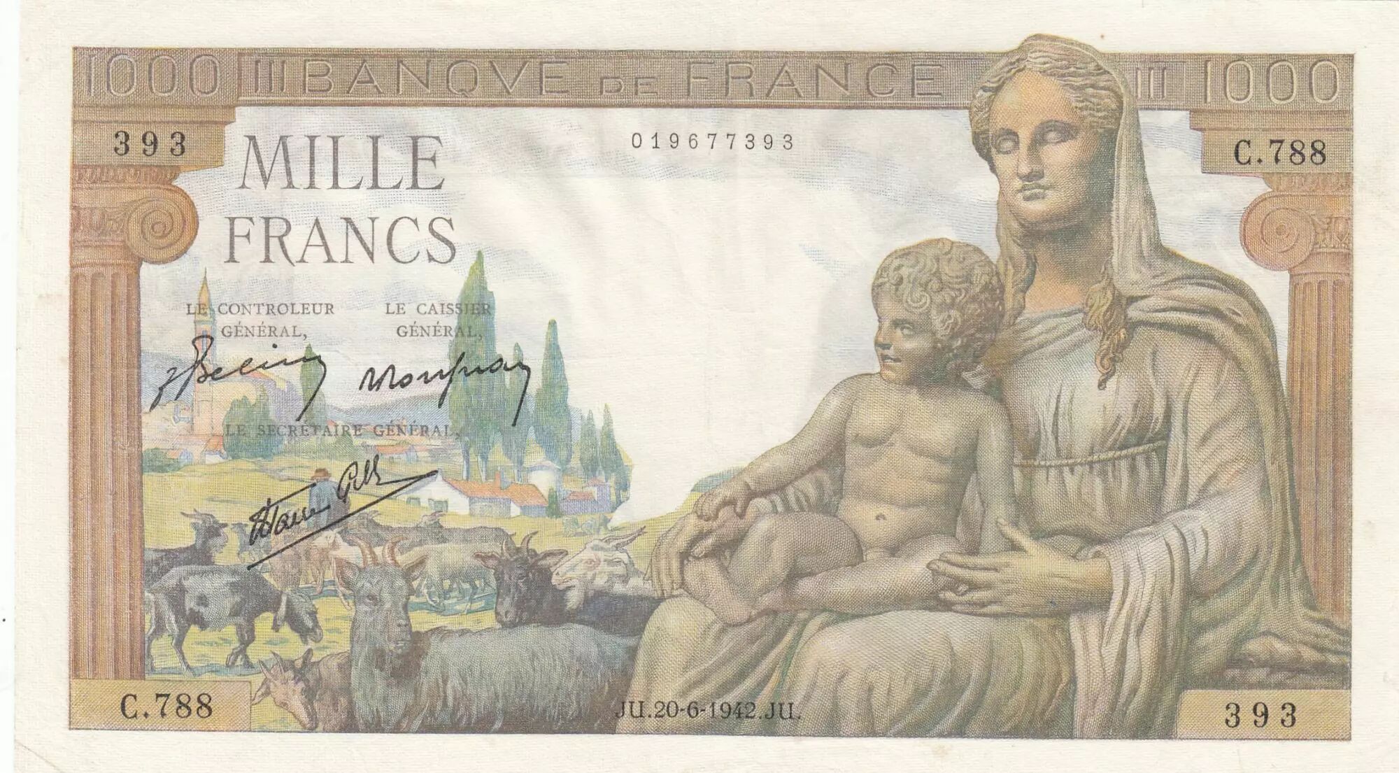 Banknote France 1000 Francs - Demeter - 20-06-1942 - Serial C.788