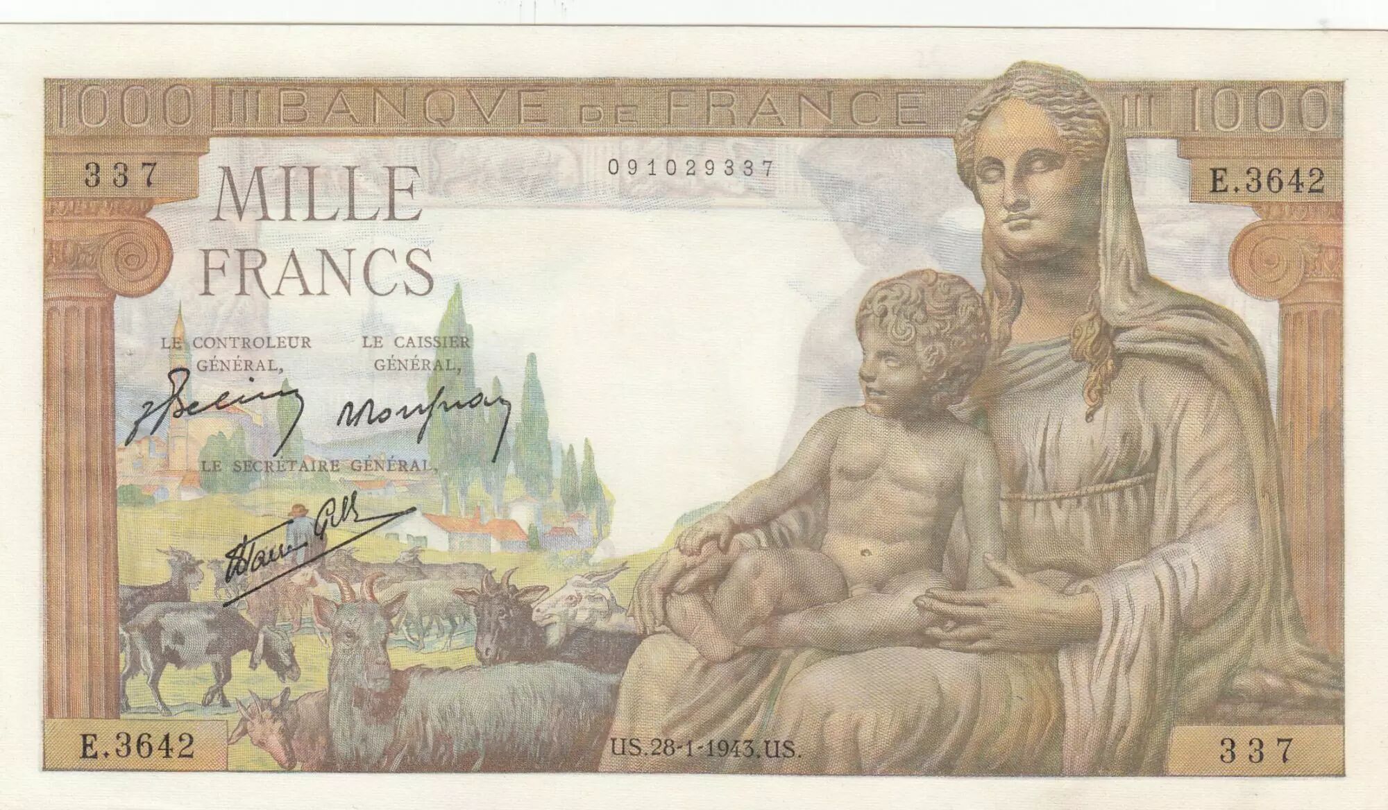 Banknote France 1000 Francs - Demeter - 28-01-1943 - Serial E.3642