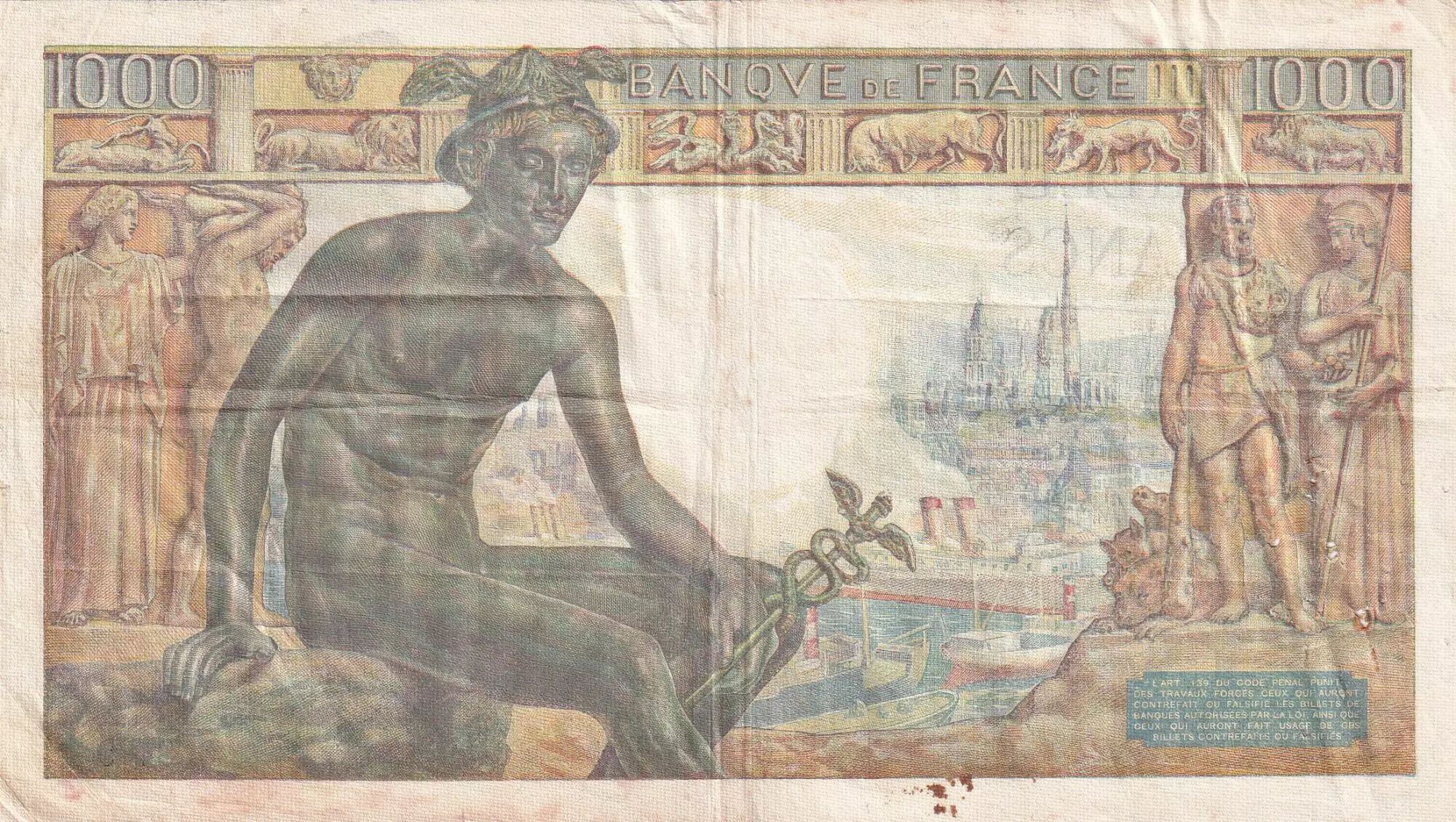 Banknote France 1000 Francs Goddess Demeter - 10-12-1942 - Serial A.2242