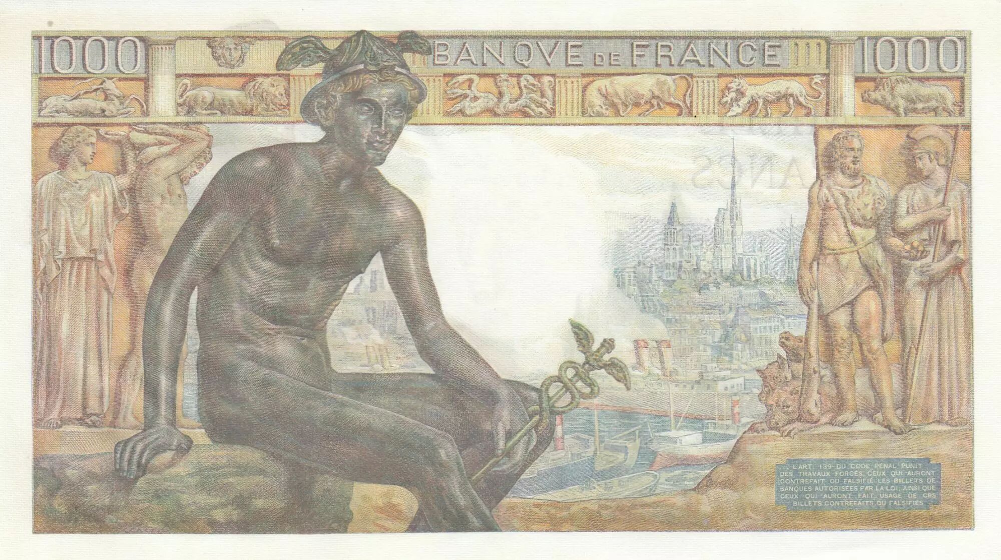 Banknote France 1000 Francs - Goddess Demeter - 20-06-1942 - Serial V.628