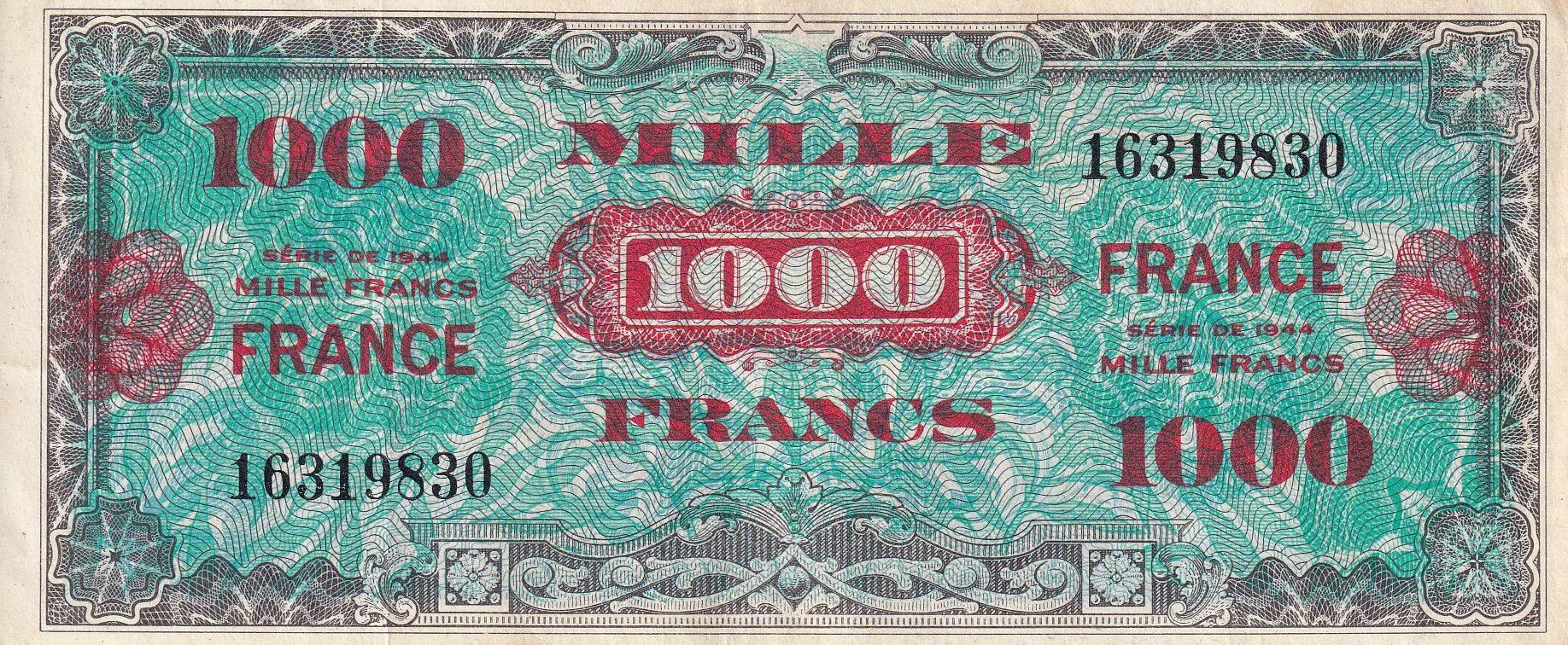 Accueil > Archivage > France 1000 Francs - Impr. américaine (France) - 1945 - Sans Série - SUP - VF.27.01
