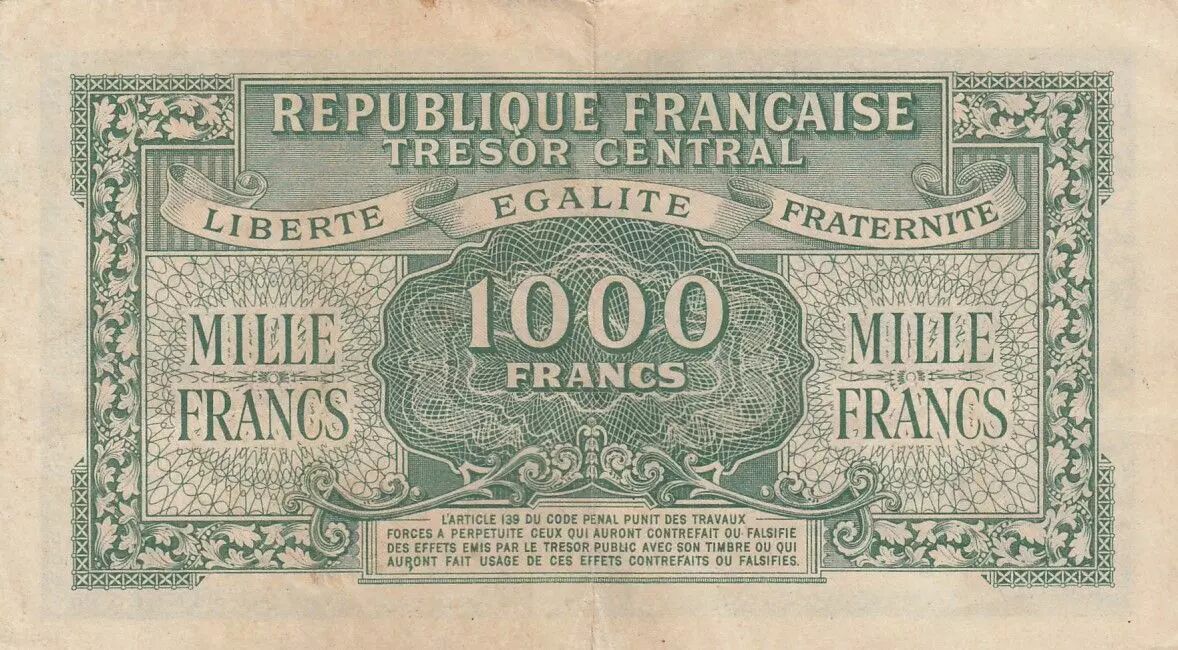 Home > > France 1000 Francs Marianne - 1945 - Letter D - P.017