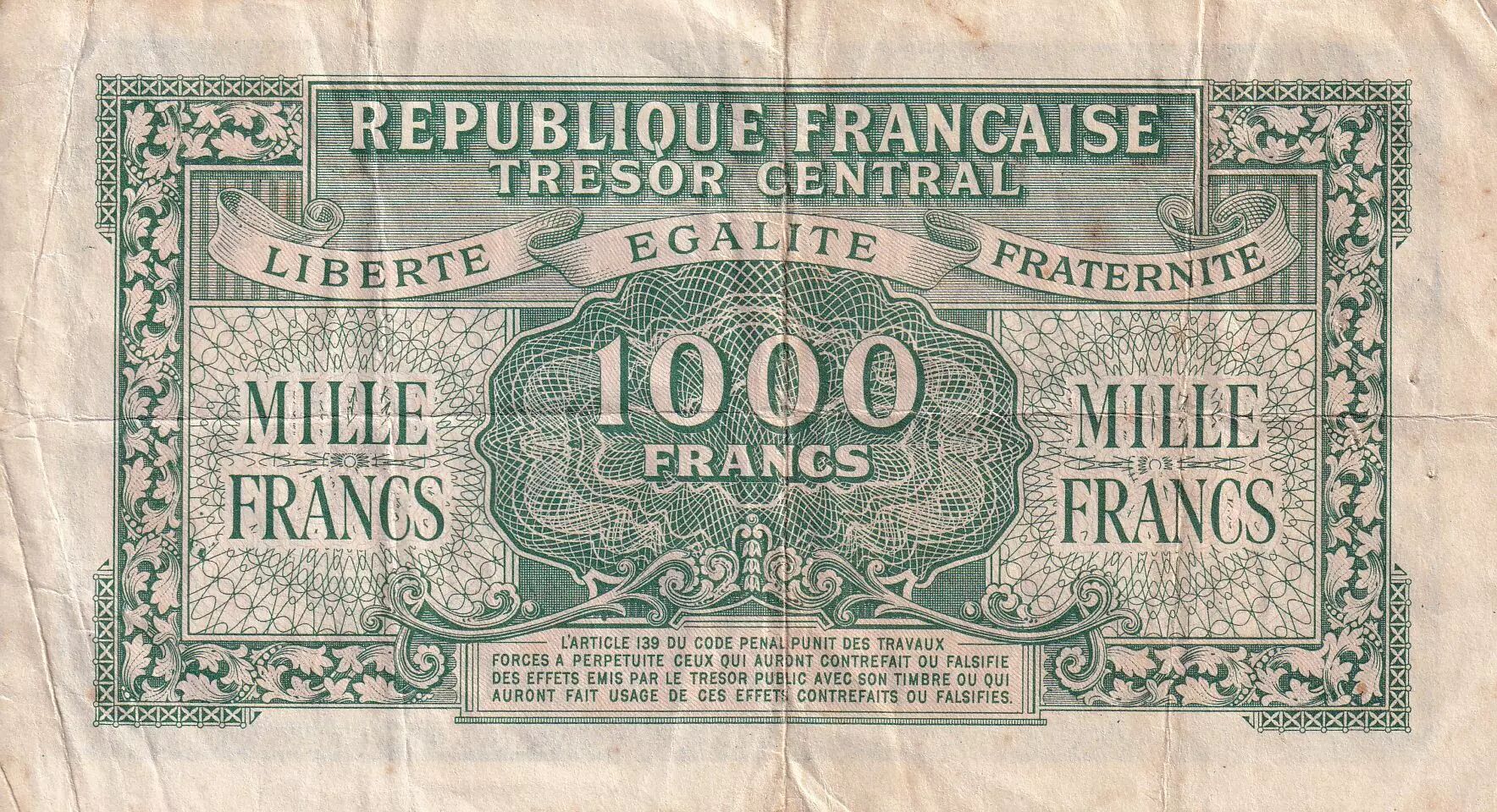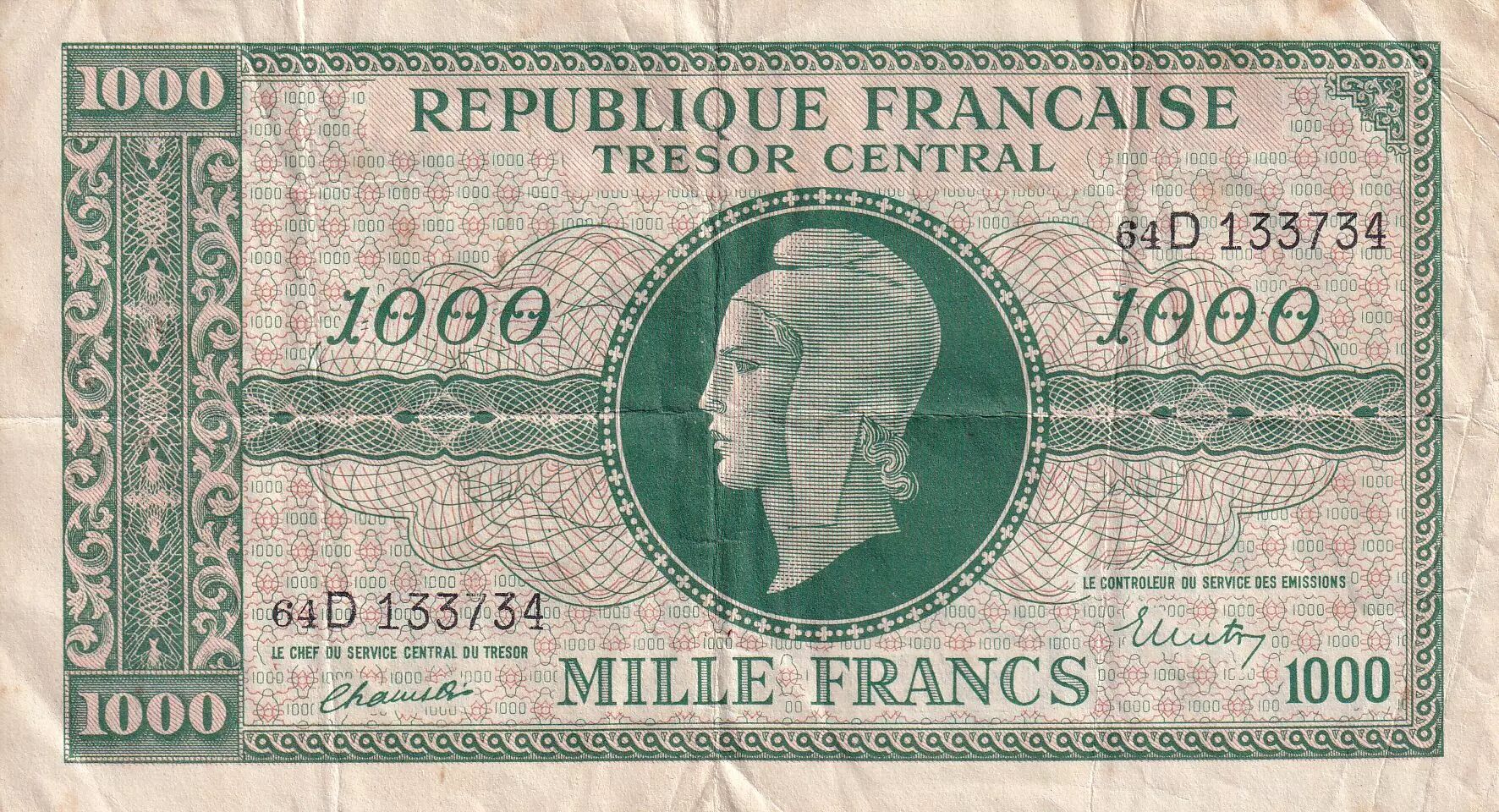 Home > > France 1000 Francs Marianne - 1945 Letter D- Serial 64 D - VF - P.107