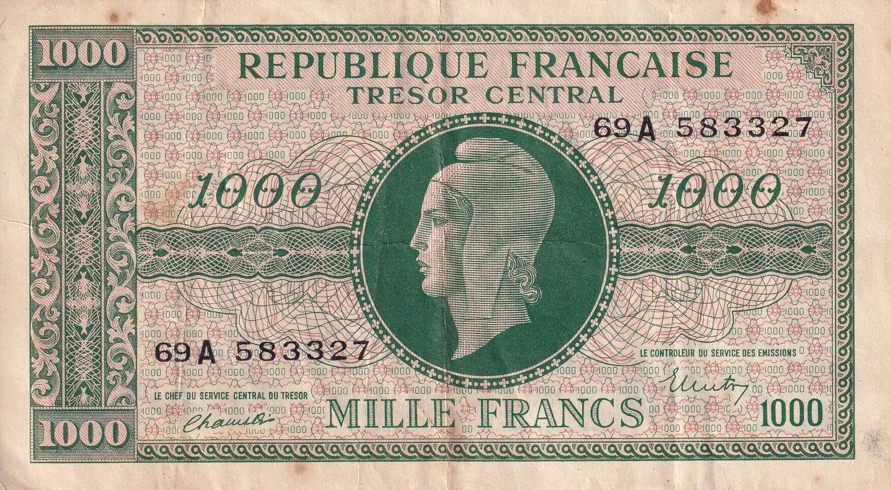 Accueil > Archivage > France 1000 Francs - Marianne - 1945- Lettre A - TTB - VF.12.01