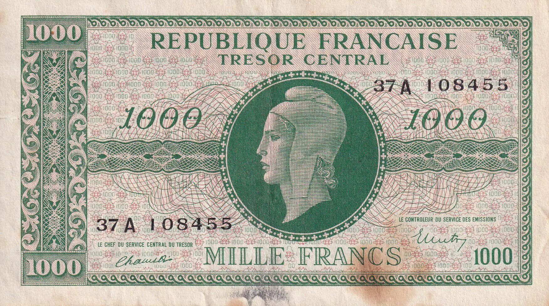 Accueil > Archivage > France 1000 Francs - Marianne - 1945- Lettre A - VF.12.01