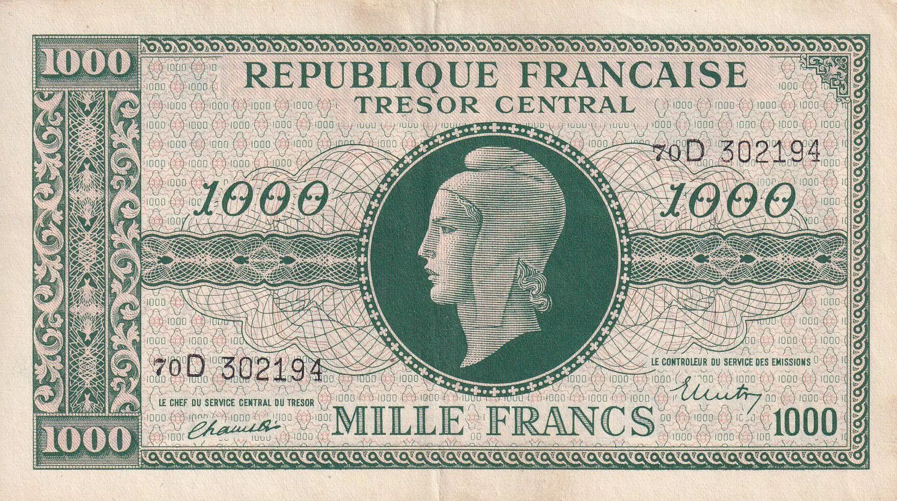 Accueil > Archivage > France 1000 Francs Marianne - 1945 - Lettre D - VF.13.01