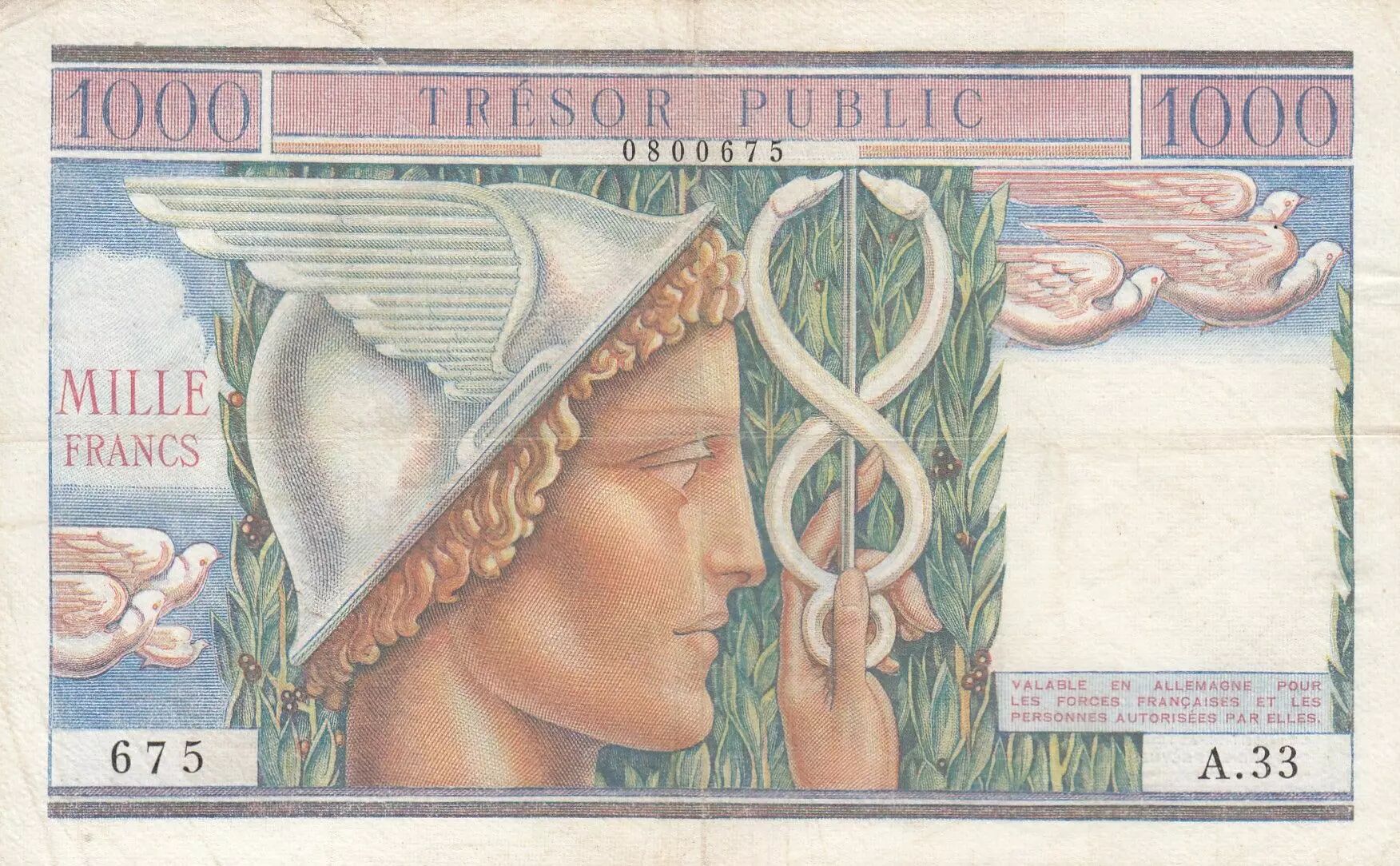 Billet France 1000 francs - Mercure - Trésor Public - 1955 - Série A.33