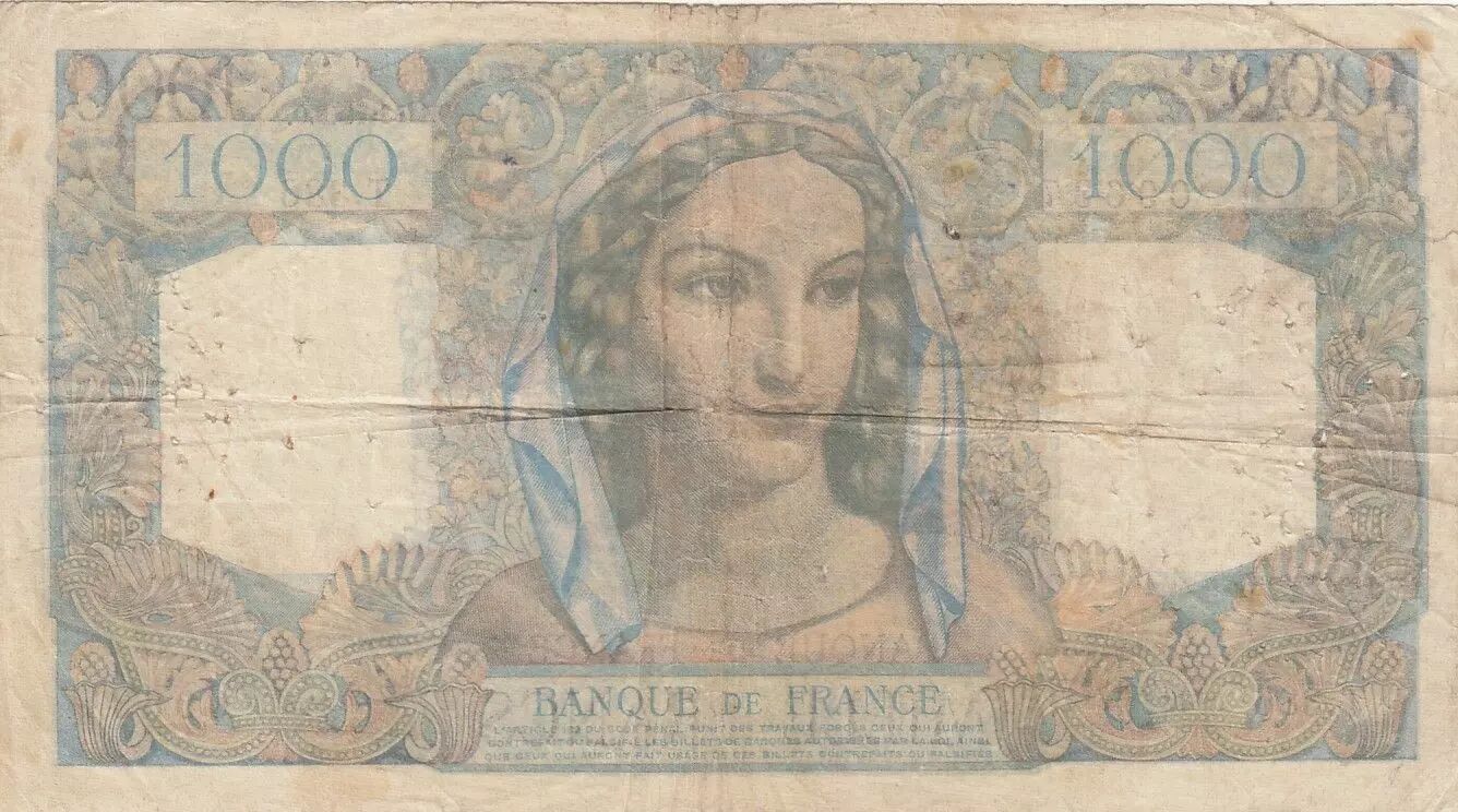 Banknote France 1000 Francs Minerva - 11-03-1948 - Serial T.386