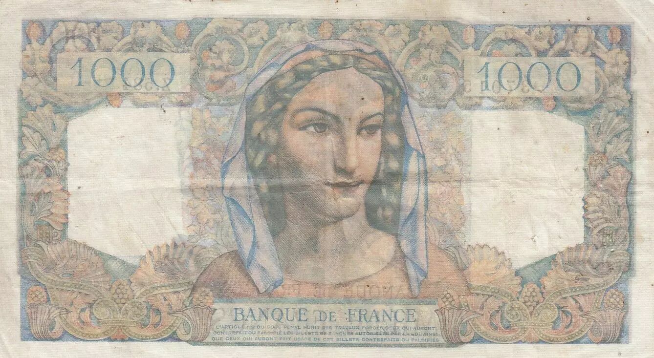 Banknote France 1000 Francs Minerva and Hercules - 01-09-1949 - Serial Z.584