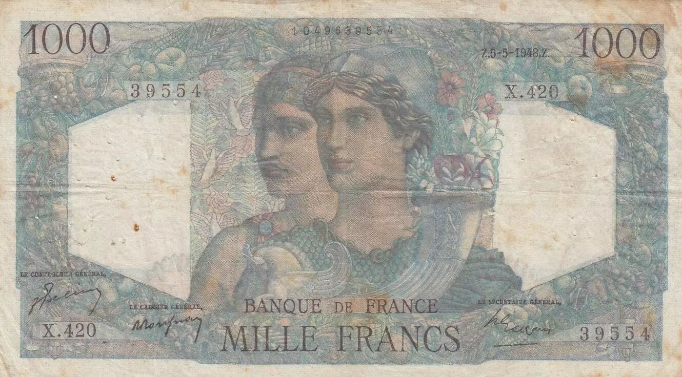 Banknote France 1000 Francs Minerva and Hercules - 05-05-1948 - Serial X.420
