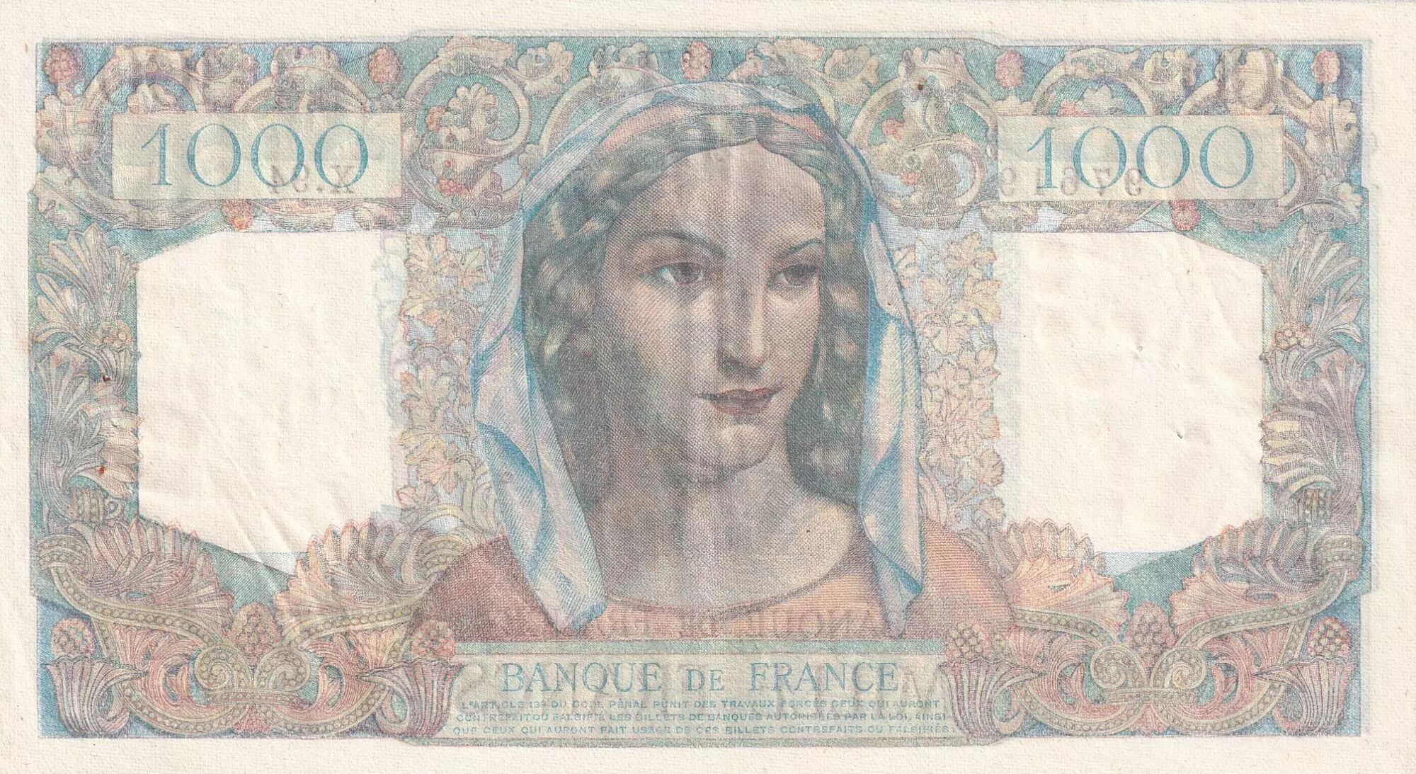 Banknote France 1000 Francs Minerva and Hercules - 12-07-1945 - Serial X.94