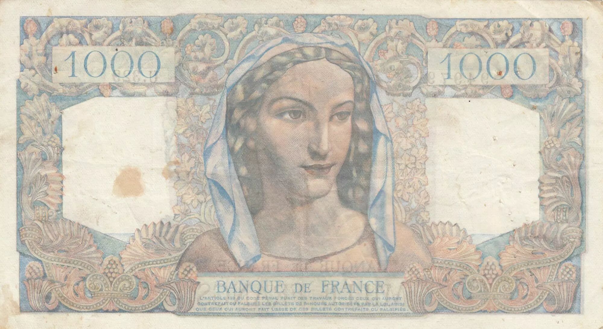 Banknote France 1000 Francs - Minerva and Hercules - 12-09-1946 - Serial U.329