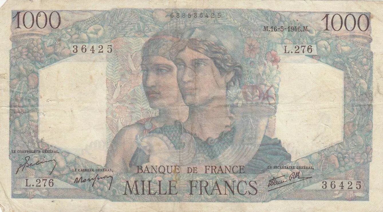Banknote France 1000 Francs Minerva and Hercules - 16-05-1946 - Serial L.276