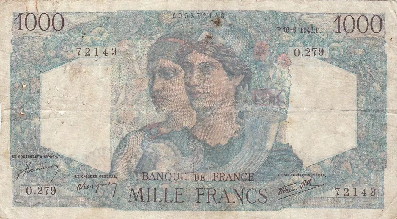 Home > > France 1000 Francs Minerva and Hercules - 16-05-1946 - Serial O.279