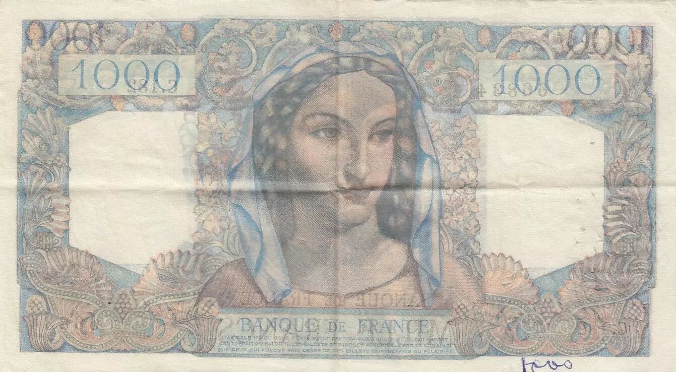 Banknote France 1000 Francs Minerva and Hercules - 17-01-1946 - Serial C.182