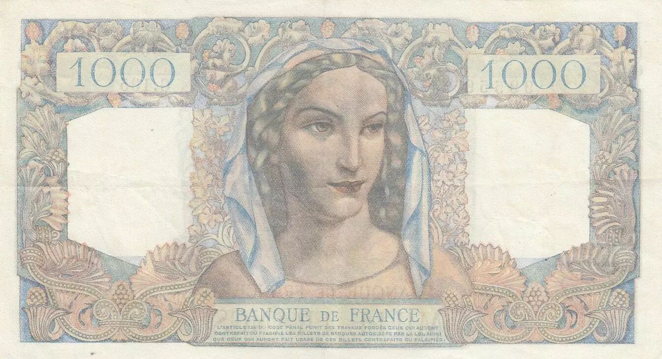 Banknote France 1000 Francs Minerva and Hercules - 22-11-1945 - Serial G.135