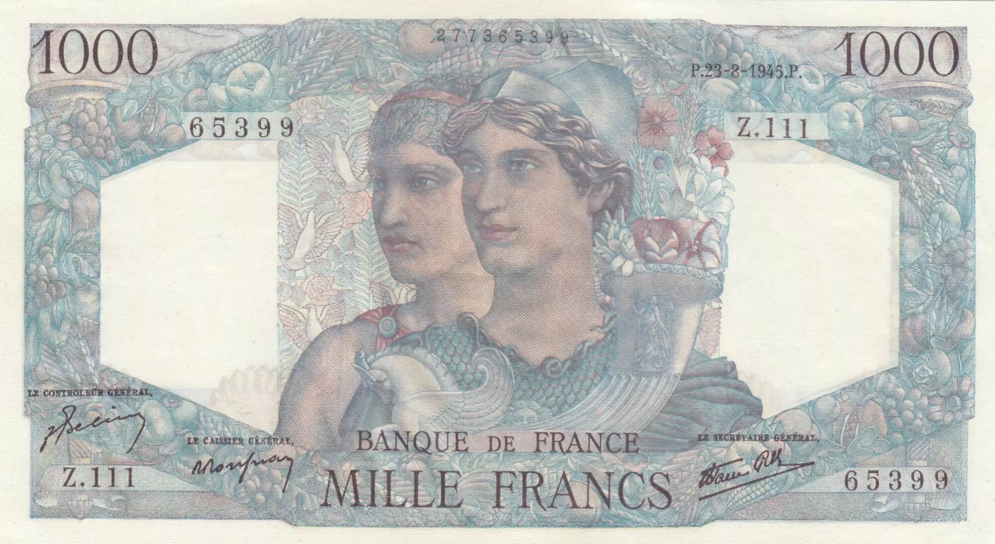 Home > > France 1000 Francs - Minerva and Hercules - 23-08-1945 - Serial Z.111